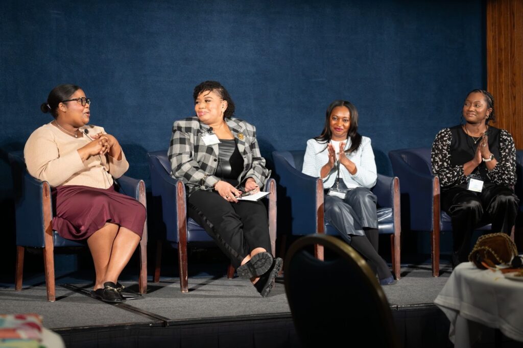 Tiera (second from left) moderated a Community In Action panel at the 2026 Cervical Cancer Summit featuring public health experts, including Dr. Thomas (at right).