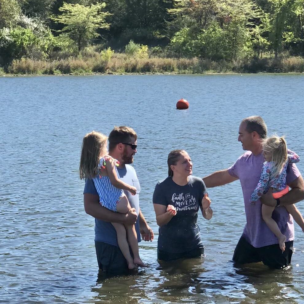 Athena and her family being baptised.